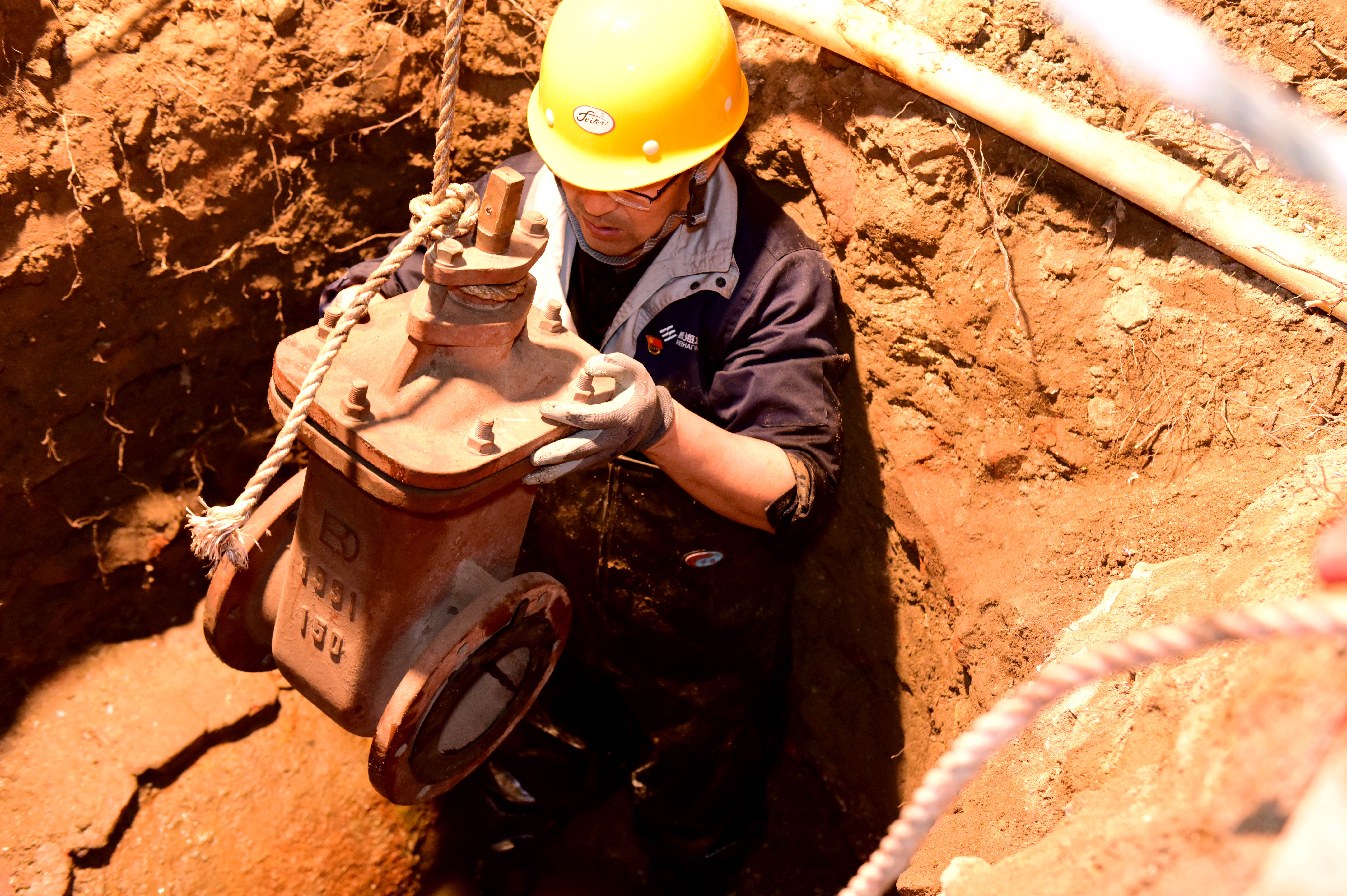 工作人員維護(hù)供水閥門