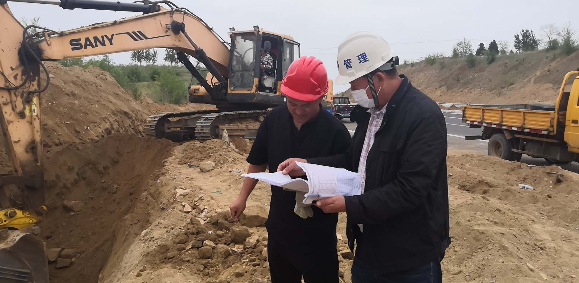 工作人員對(duì)施工現(xiàn)場進(jìn)行管線監(jiān)管